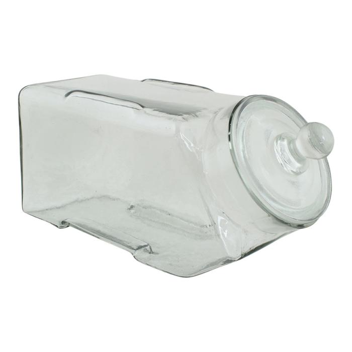 Praktisk liggande glasburk med lock. Burken är stapelbar och fungerar utmärkt som förvaring. Locket är ej tätslutande. Burken är tillverkad av 50-60% återvunnet glas. Finns också i en större storlek.